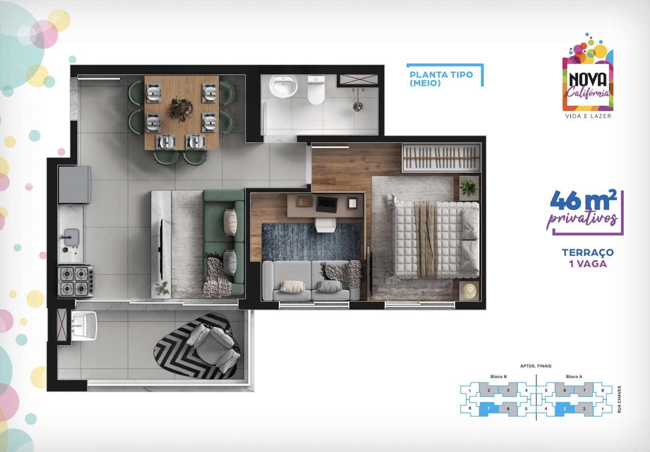 Conheça cada espaço do Nova Califórnia e visualize como será viver em um condomínio planejado para o dia a dia. Ambientes bem distribuídos, áreas comuns completas e um projeto que valoriza luz natural, convivência e funcionalidade.